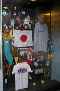 Portion of chain link fence and placed in museum. People used this fence that was on the outside of the Murrah Building as a makeshift memorial to the victims. leaving cards, teddy bears and .other personal mementos.